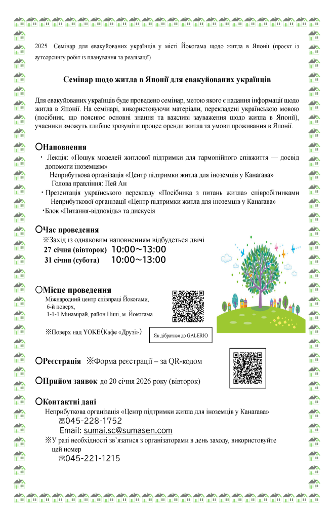 *У цьому семінарі можуть брати участь також евакуйовані українці, які проживають поза межами міста Йокогама.