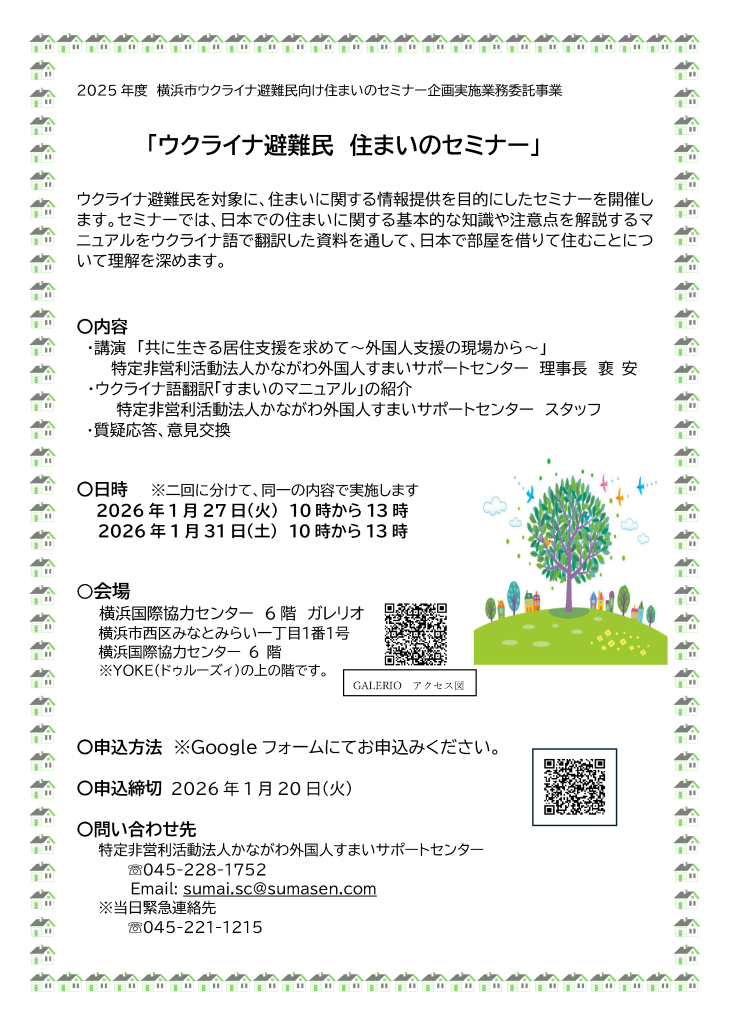 *このセミナーは、横浜市外に住んでいるウクライナ避難民の皆さまも参加できます。